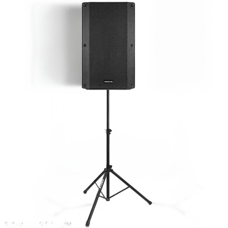 Enceinte active multifonctions avec connections Bluetooth, Lecteur USB & SD, entrée AUX et RCA. Système avec batterie, 8 heures d'autonomie. Pour évènement jusqu'à 120 personnes en intérieur et 80 personnes en extérieur. Fournis sur trépied avec deux microphones sans fil.